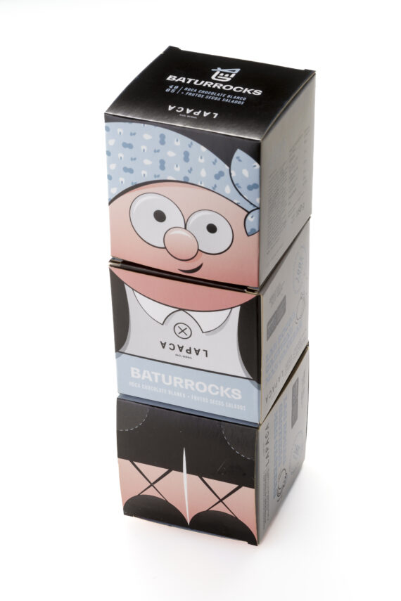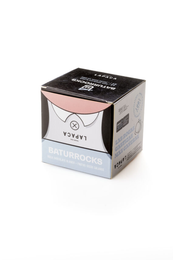 Chocolate blanco (35%) (Azúcar, manteca de cacao, leche desnatada en polvo, leche entera en polvo. materia grasa láctea anhidra, emulgente: lecitina de soja), almendra caramelizada (29%) (almendra, azúcar), cacahuete frito salado(14%) (cacahuete, aceite de girasol, sal), kikos (10%) (maíz, aceite de girasol, sal, proteína vegetal hidrolizada, aromas, extracto de levadura, dextrosa, azúcar, aroma de humo, extracto de especias, potenciadores del sabor: glutamato de monosodio, harina de arroz, levadura en polvo) pipas fritas saladas (10%) (pipas de girasol, aceite de girasol, sal). Min 30,5% cacao
