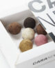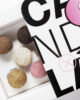 Trufa de chocolate de chocolate blanco, coco, lima y menta.