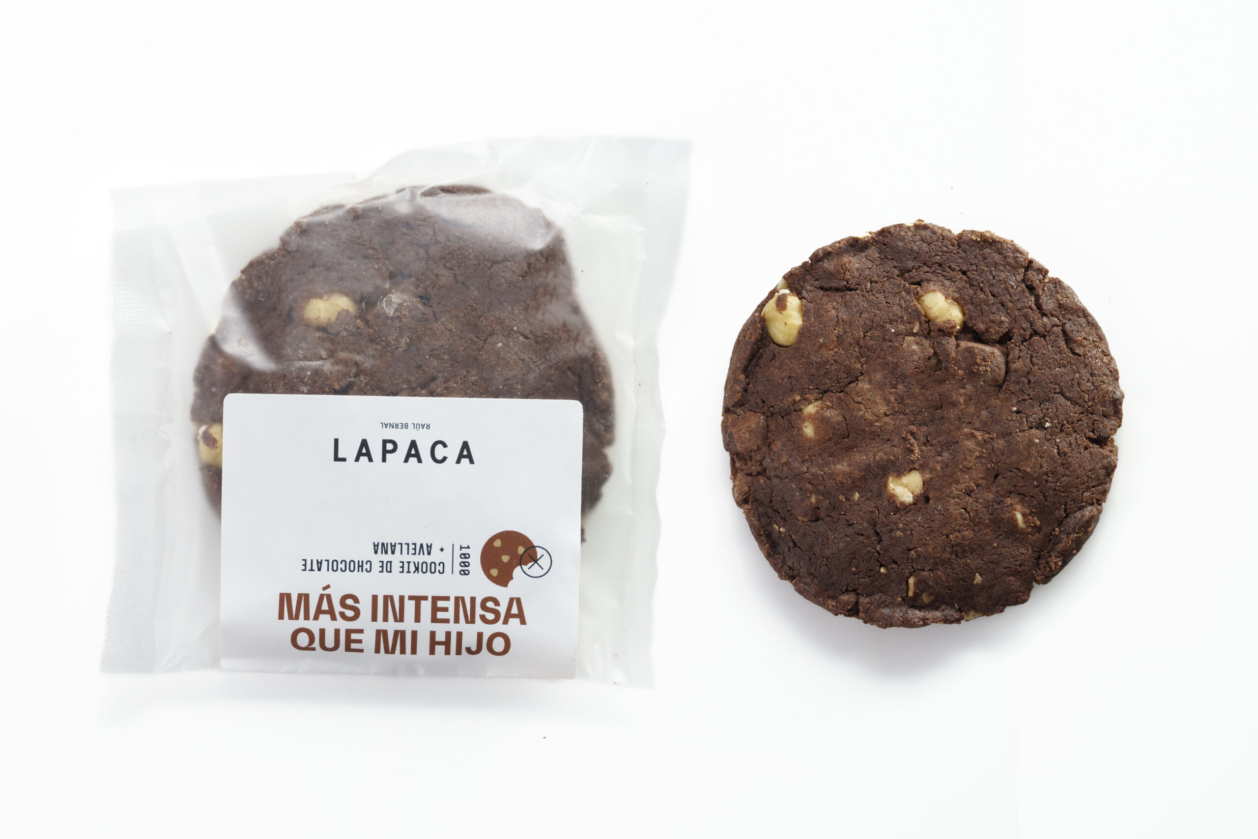 Harina de trigo (24%), azúcares, chocolate negro (19%) (pasta de cacao, azúcar, manteca de cacao, emulgente: lecitina de soja), mantequilla (leche), huevo, avellana tostada (9%), cacao en polvo (cacao en polvo, regulador de la acidez) gasificante: impulsor (E450i, E500ii, E170, E551), sal, bicarbonato sódico, vainilla.
